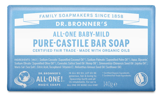 Dr. Bronner's Pure-Castile Bar Soaps are biodegradable-vegan, gentle and versatile, good for washing body, face or hair! Enjoy only 2 cosmetics, enough sleep & Dr. Bronner's Magic Soaps to clean-body-mind-soul-spirit instantly uniting One! All-One!!