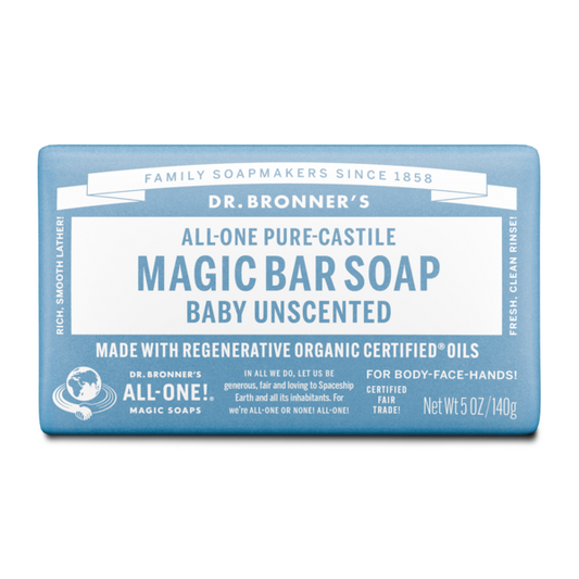 Dr. Bronner's Pure-Castile Bar Soaps are biodegradable-vegan, gentle and versatile, good for washing body, face or hair! Enjoy only 2 cosmetics, enough sleep & Dr. Bronner's Magic Soaps to clean-body-mind-soul-spirit instantly uniting One! All-One!!